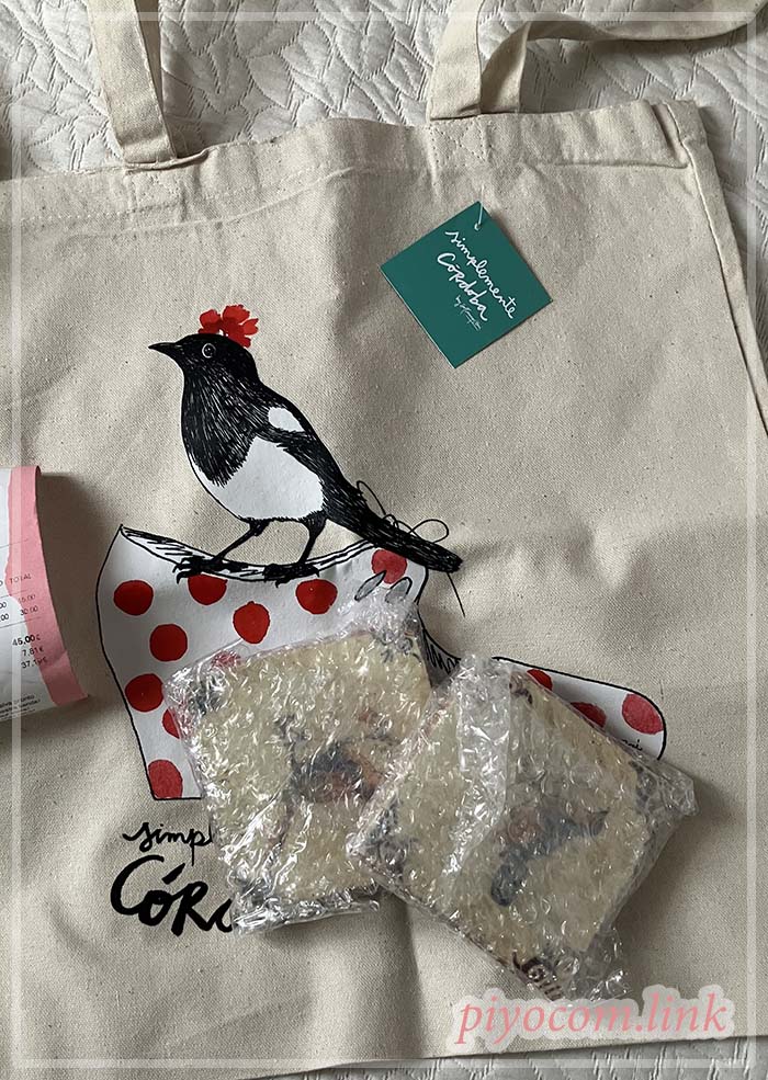 すごく可愛いエコバッグと、包装で見えづらいですがタイルに絵付けされた小鳥です。